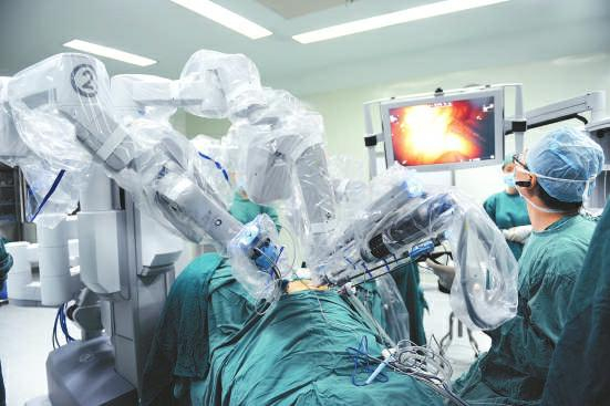 四川省人民医院的达芬奇手术机器人正在为患者进行手术。 (付辉 摄)