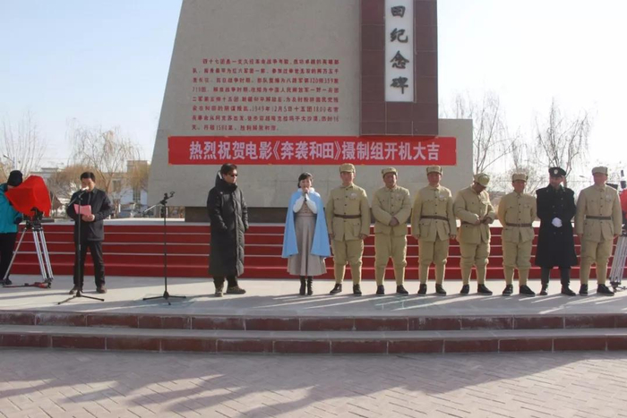 1月8日上午12时,红色军事题材电影《奔袭和田》开机拍摄仪式在生产建设兵团第十四师四十七团中国人民解放军进军和田纪念碑广场隆重举行。