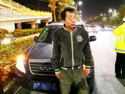 这是一辆奇瑞轿车,当时正沿万福西路由东向西行驶,在抵达路口检查点前方时,突然停了下来。民警意识到驾驶员意图逃跑,立即赶了过去。