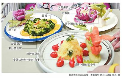 怎么让这些简单的食材变得色香味俱全? 名人酒店的张柏辉特地挑选了一位会刀工雕刻的厨师,准备让他给小耀笛设计一下摆盘,让孩子一看就开心起来。23岁的小厨师牟佳兴刀工雕刻的手艺很棒,专门负责饭店里的冷餐摆盘。