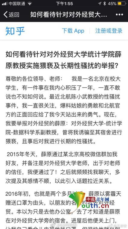对外经贸被举报性骚扰教授正在国外 校方:正召回