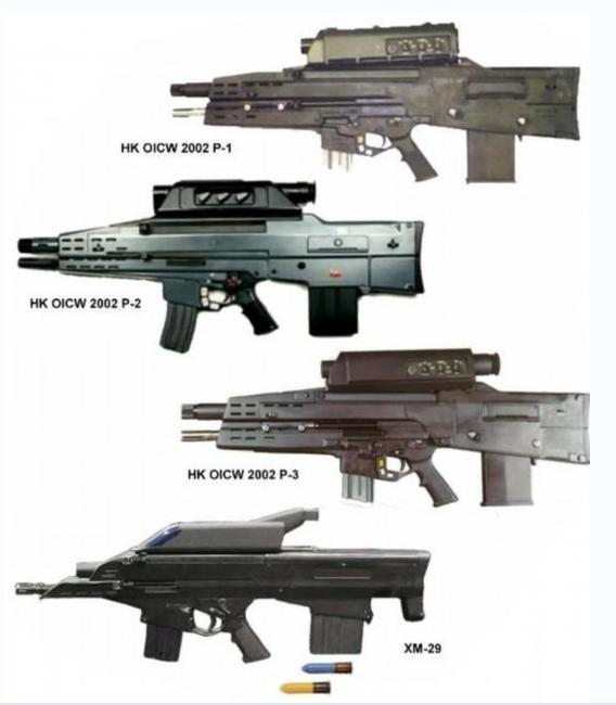 有人说这是中国版OICW,这个理想单兵战斗武器(Objective Individual Combat Weapon)的概念最早是由美国人提出的,在武器配置上将突击步枪和榴弹发射器合二为一,能够通过编程设定的空爆枪榴弹,打击杀伤敌方集群人员,以及战壕内,或掩体后的人员,也就是说,从此,单兵手中有了可以精确打击数倍于己的敌人的小炮,比甩手雷效果好得多。