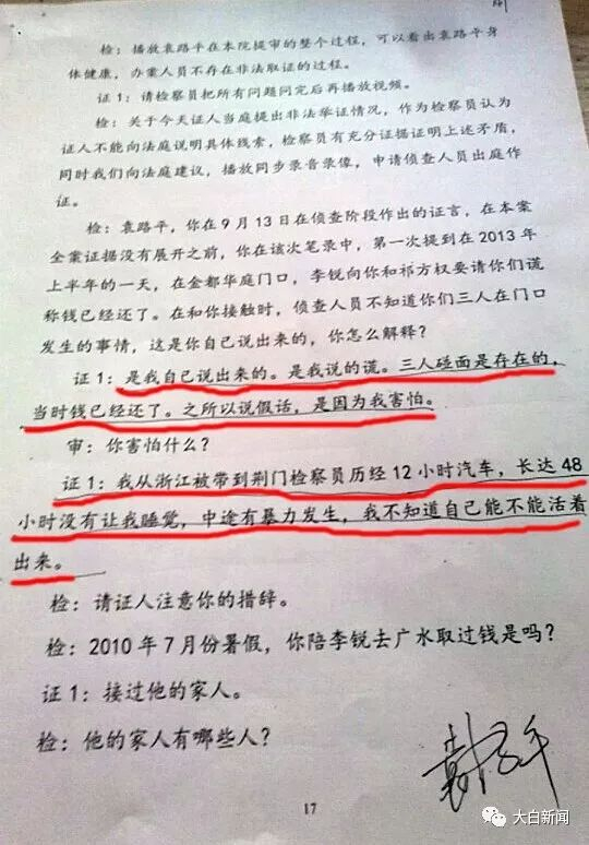 李锐对大白新闻说,“案件的证据是检察机关非法获取的伪证,证人袁路平、祁方权的证言证词(关于5万元究竟还没还)前后有三次变更,根本原因就是检察机关滥用公权力、非法取证。”
