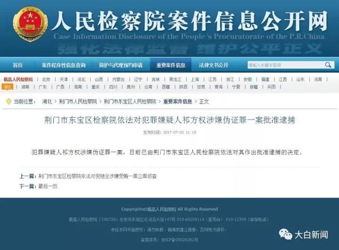 今日下午,大白新闻联系到了湖北省荆门市检察院的相关工作人员。