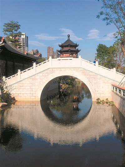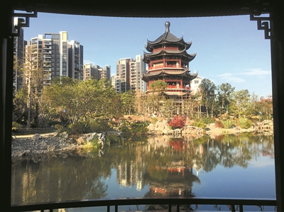 卸去脚手架的和园,已展现出岭南园林的“大气之美”。和园遵循中国传统北山南水、负阴抱阳的景观建园形式,运用岭南传统造园手法,融汇岭南明清至今的园林设计精髓,营造出六组丰富多变、内外渗透的园林空间,包括同聚顺和、粤韵流风、百味咸宁、水月松风、泰和书院、云岫精庐,展现山水、街市、人家的岭南水乡生活画卷。