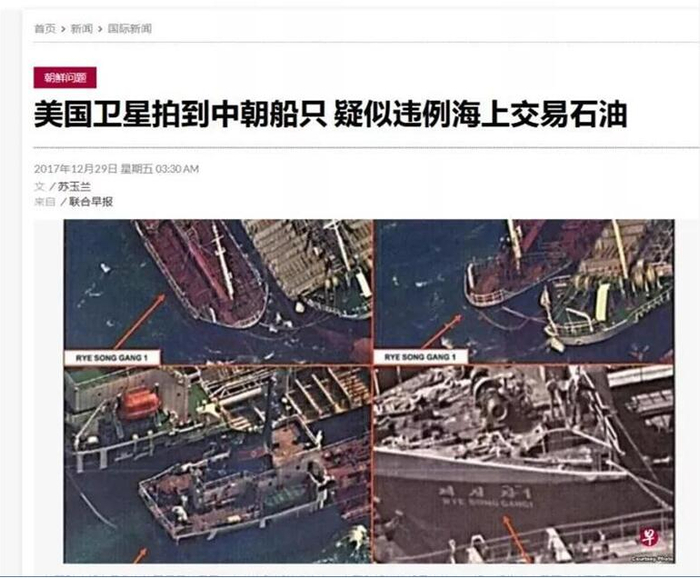 去年底,有外媒爆料美国卫星图片,怀疑有中国大陆船只偷偷在公海向朝鲜输油。中国外交部发言人华春莹曾对此予以否认。