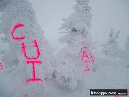 据日本ANN电视台15日报道,事发现场位于“八甲田山”山顶公园车站附近,五棵冰树上被红色荧光喷漆用英文和中文分别书写了“HAPPY BIRTHDAY”和“生日快乐”。