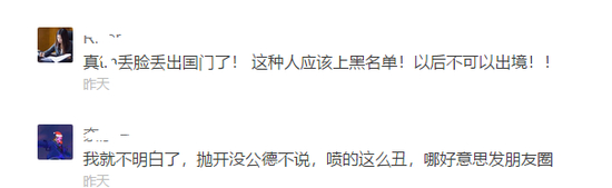 还有网友认为,还在很多出境的中国人都比较注意了,大家都怕给祖国抹黑: