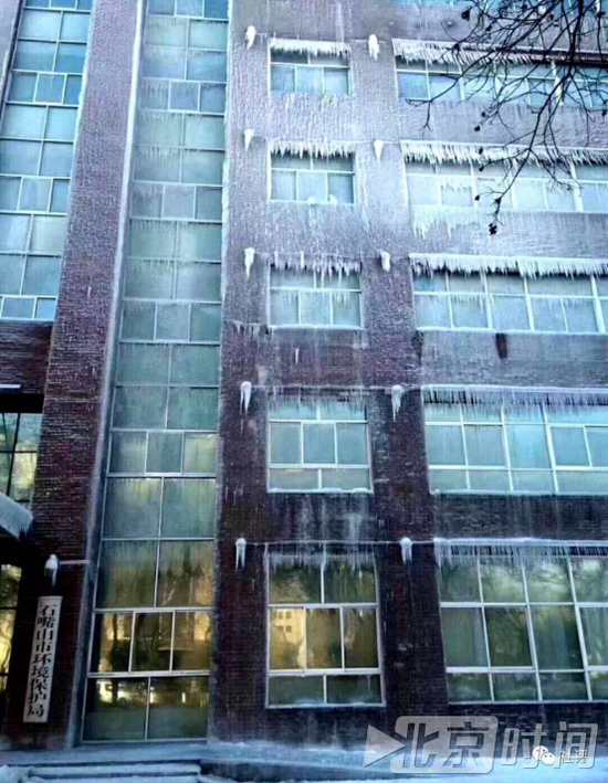 网友爆料:环保局大楼被雾炮车喷成冰雕