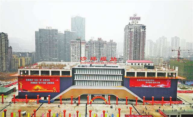 沙坪坝站铁路综合交通枢纽位于沙坪坝区核心区,北临三峡广场、南靠沙坪坝公园。它是重庆市政府与铁路总公司合作建设的示范项目,项目建设内容包括站房、综合交通换乘枢纽、相关城市道路工程、轨道交通以及物业开发等,分三个阶段建设;2020年全部建成投运后,高铁、轨道、公交、出租、社会车辆等多种交通方式换乘距离均在200米以内。(相关报道见9、10版)