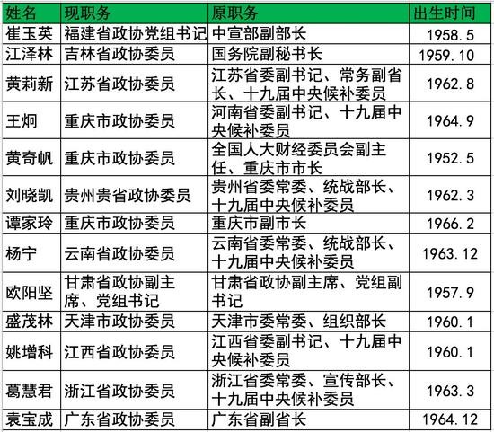 不仅如此,在各省份政协的最新名单中,“中央空降”及“跨省当选”等往常很少见的情况多次出现,并有多名副部级领导及中央候补委员入列,主要情况如下: