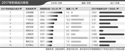 第一是地区经济发展实力,目前国内排名前十位的机场,基本与全国经济前十位的城市名单相似。