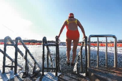 据冬泳协会的会员们说,之所以他们觉得不冷,也能适应,是因为他们经历了循序渐进的过程。刘明艳说,更多的靠的是意志,一般人都可以战胜自己。因为人是恒温动物,有完善的体温调节机制,当环境温度在一定范围内时,无论气温怎么变化,机体都能迅速调节,保持核心温度在37℃左右。但冬泳也要控制好下水的时间,主要根据自己的承受能力,一般每天下水一至两次,每次1分钟左右,最长也不会超过5分钟。另外特别提醒,有较严重疾病的人,如药物不能控制的高血压病人、先天性心脏病人、风湿性心瓣膜病人、癫痫病人等,不宜参加冬泳。 新文化记者 王强/摄 冯艳/文