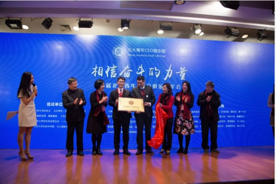 2018年1月20日,为迎接北京大学120周年校庆,由北京大学校友会指导,北大青年CEO俱乐部主办,爸爸的选择、测测星座、《与北大同行》摄制组等协办,北京大学校友创业联合会、1898咖啡馆、北京大学创新研究院、北大创新评论、蔚来汽车、好孕妈妈、爱培优、第一大车队壁虎车友会、安远科技、火星人俱乐部、博雅科诺、灵犀微光、智唐科技、云智环能、大有科技、伏牛堂、美因基因、悟空租车、巧口英语、创客总部、未名酒庄、茅台集团匠中匠、派洛奇科技、第六工坊、HARMOS和合谋实等支持的“相信奋斗的力量——首届北大青年CEO俱乐部年会”在北京盛大举行。来自全国各地的800多位北大杰出青年CEO们出席本次盛会,现场座无虚席,气氛热烈。