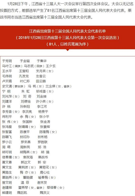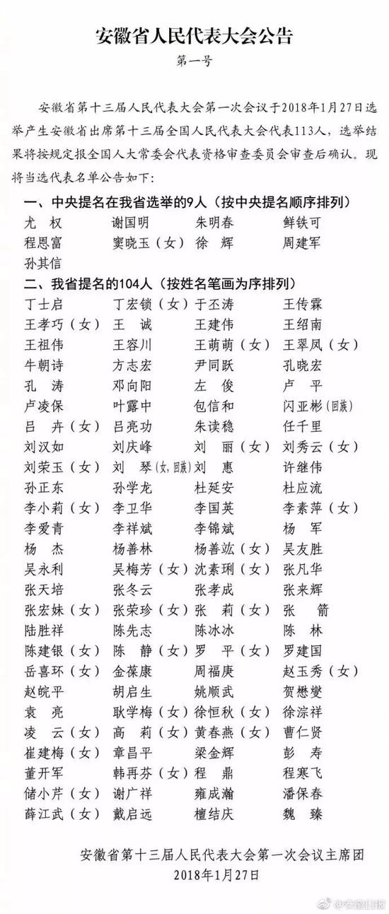这几天,多个省份人代会相继选举产生第十三届全国人大代表。1月27日,安徽省选出全国人大代表,尤权在列;1月28日,江西省选出全国人大代表,栗战书在列;1月29日,湖南省选出全国人大代表,王岐山、胡春华在列。