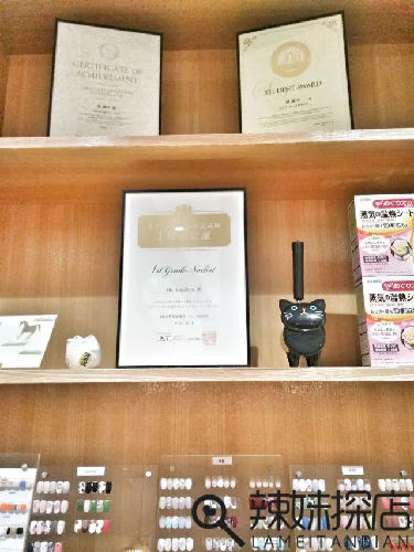 上面从左到右,是日本美甲协会认定JNA甲油胶上级,日本美甲协会颁发特别奖,下面一层是日本美甲协会JNEC一级(最高级)