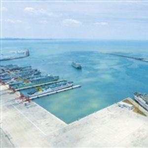 悦耳的汽笛声中,一艘艘巨轮有序驶入港池,稳稳地靠上泊位。在海口港集装箱码头,整齐的集装箱货柜,紧随塔吊的“节奏”,装卸作业热闹非凡。