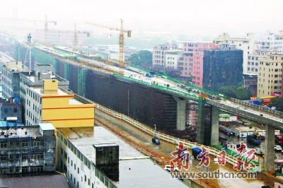 30日,广州地铁十四号线一期的最后一座车站钟落潭站顺利封顶。南方日报记者 符超军 摄