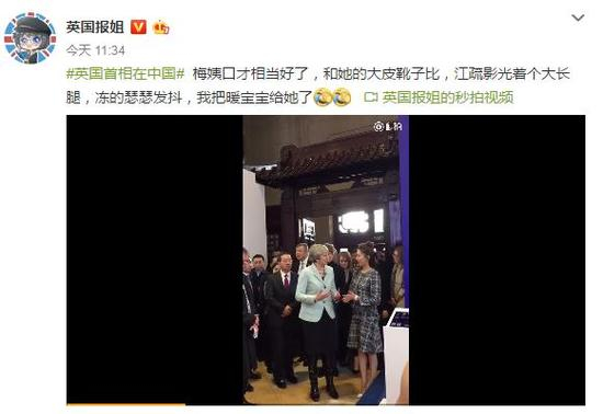 上游新闻注意到,微博知名中英文化自由撰稿人“英国报姐”也参加了活动,据其发布的现场视频称,“梅姨口才相当好了,和她的大皮靴子比,江疏影光着个大长腿,冻的瑟瑟发抖,我把暖宝宝给她了”