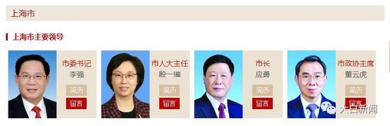 大白新闻注意到,上海市四套领导班子都是浙江人。