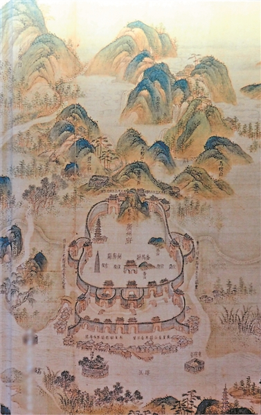 清康熙年间绘制的《广州府舆图》,采用立体写景法绘制,第二道城墙之内的双门高楼,便是双门底大街之所在。