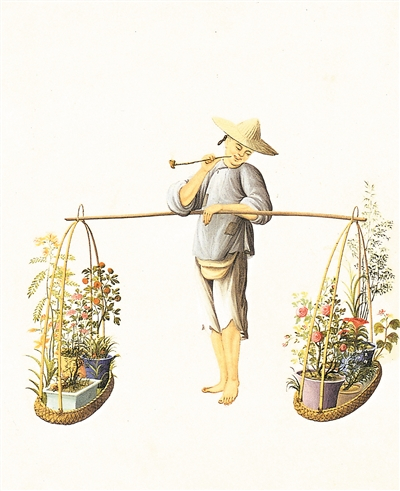 清代外销画描绘的花贩。