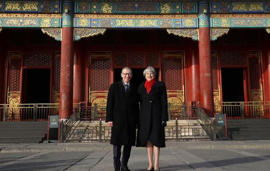 2018年2月1日,北京,英国首相特蕾莎·梅和丈夫菲利普参观故宫。 图片来源:视觉中国
