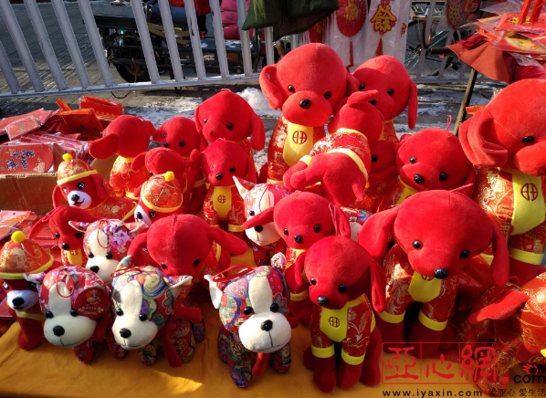 另外,记者在走访中发现,还有很多生肖狗饰品被商家作为主打,穿着红衣服的布艺小狗玩偶,身上还印着“旺财”、“赐福”等吉祥话,栩栩如生、憨态可掬,特别可爱,价格在七元至几十元不等,吸引了不少路过市民的眼球。
