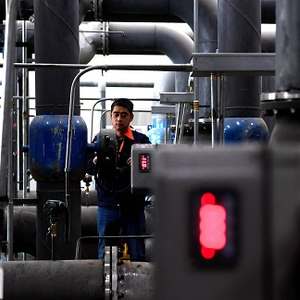 2017年11月9日,张家口市东源热力有限责任公司员工在检查新增天然气供热设备运行情况。新华社记者 王晓 摄