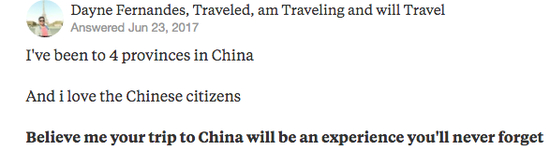 在美国问答网站Quora上随便一搜“Chinatravel”,海量结果秒秒钟刷屏。外国网友不是在中国玩得不亦乐乎,就是在准备来中国的路上。还有一些外国小伙伴们表示,来中国旅游,回国后各种崩溃+“水土不服”!