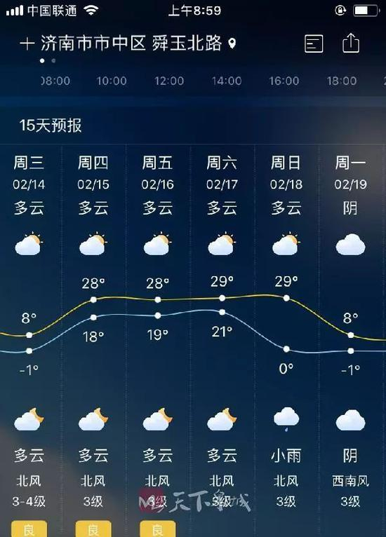 2月15日,济南温度18℃—28℃!