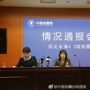 2月12日18时31分,河北永清发生4.3级地震,中国地震局和中国地震台网中心立即启动应急响应,并在晚上9时30分召开了媒体通报会。