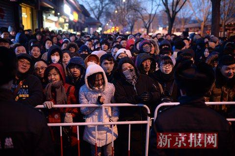 “以前看新闻说初一上香提前20多小时就有人在雍和宫门外候着了,特地赶过来感受年味儿。”石家庄的吴女士于昨日下午19时抵达雍和宫。她称,为了感受气氛,能第一批进入雍和宫烧头香,她放弃了在家吃年夜饭的机会,在附近的快餐店随便吃了点饭便等候在雍和宫门口。