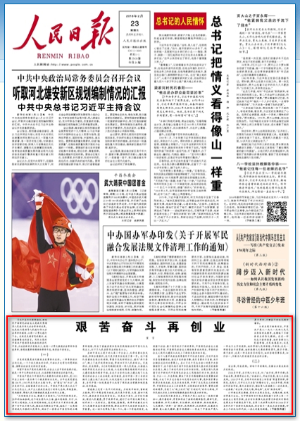 人民日报刊发“宣言”署名文章:艰苦奋斗再创业