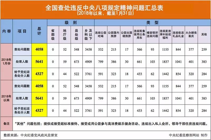 此外,在节后上班首日这一关键节点,中纪委就公布违反中央八项规定精神问题汇总表,并且使用了新表述,再次释放了“纠正‘四风’不能止步,作风建设永远在路上”的强烈信号。