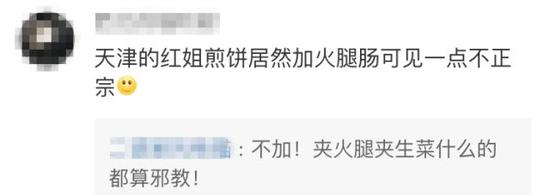 此外,好不容易出现的美食也被网友指出了毛病。有网友表示,节目里推荐的天津煎饼夹火腿生菜,不正宗。