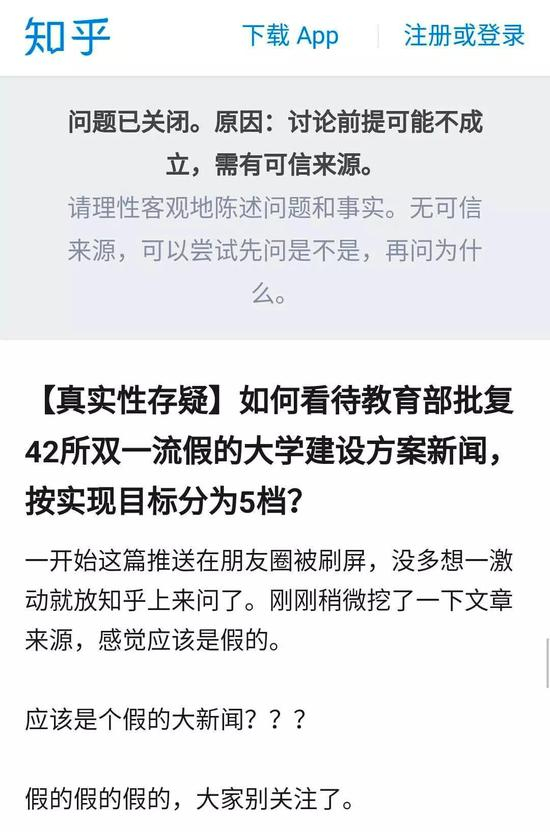 中国青年报(ID:zqbcyol)注意到,知乎上已有相关问题被关闭,原因是:讨论前提可能不成立,需有可信来源。