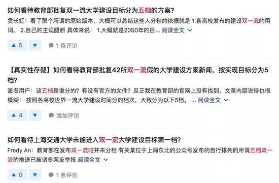 “5档”之说被多家网络平台转载、网友转发的同时,在知乎上,这个话题也引发“问答”讨论: