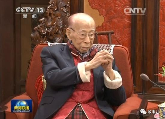 新闻画面显示,当时饶宗颐向李克强和在座者拱手作揖。
