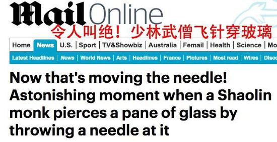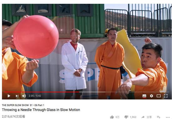 据英国《每日邮报》报道,“优兔”当红自媒体“超级慢速秀”邀请少林寺弟子,在慢速摄像机前表演少林绝技“针穿玻璃”。