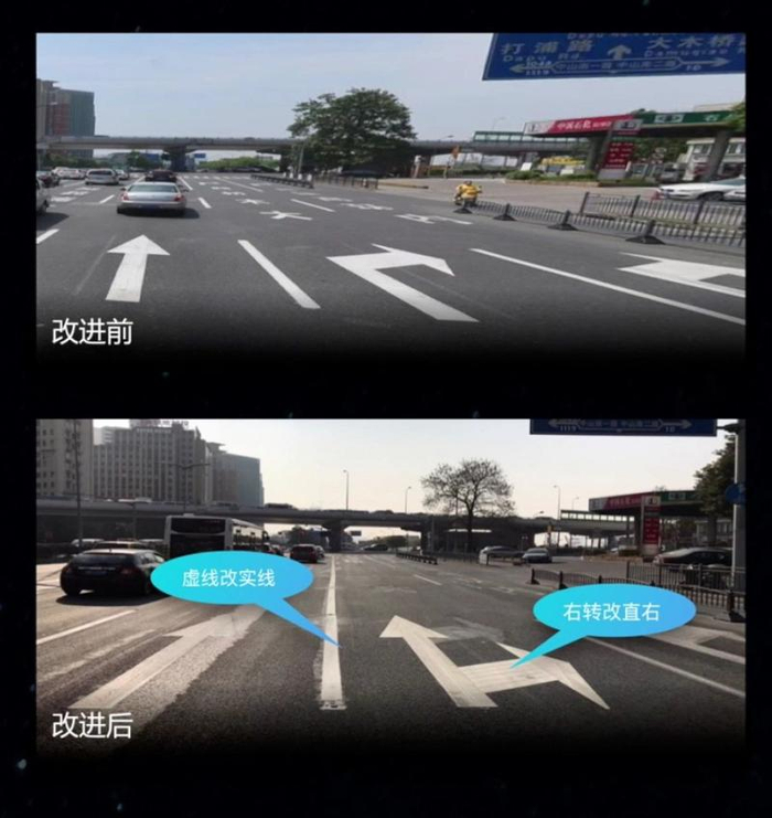 在试点过程中,通过大数据分析,系统计算出试验区域内可优化的交通组织6处,经综合研判,对中山南路/瑞金路路口的车道及路口标线进行了重新布设。同时,针对中山南路/瑞金路东进口流量存在潮汐式的特点,正在研究对增加可变导向车道的方案。