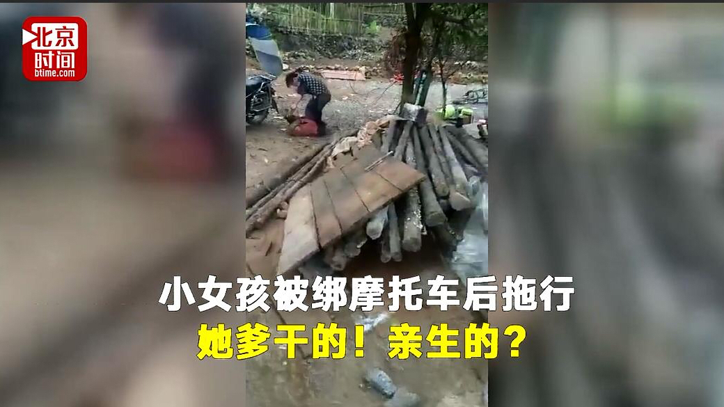 狠心!父亲毒打女儿并将其绑摩托车后拖行