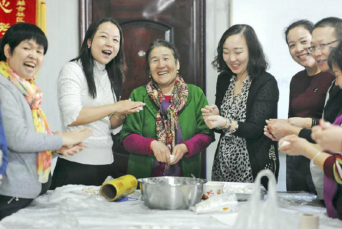 2月28日,乌市水磨沟区苇湖梁片区管委会融合社区开展元宵节联谊活动,乌市人防办驻融合社区“访惠聚”工作队队员、社区干部以及结对亲戚们在一起包元宵。