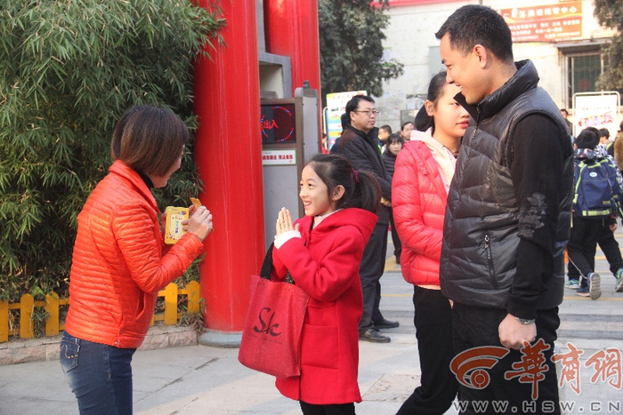 “过年好!”“祝老师新年快乐!”“祝同学学习进步!”师生、家长彼此拜年、问好。强校长和老师们向学生送上一张张富有大明宫小学文化特色的“通关文牒”,上面有一份“经典密码”,需要学生补充完整,预示着迈入新学期,通关成功。
