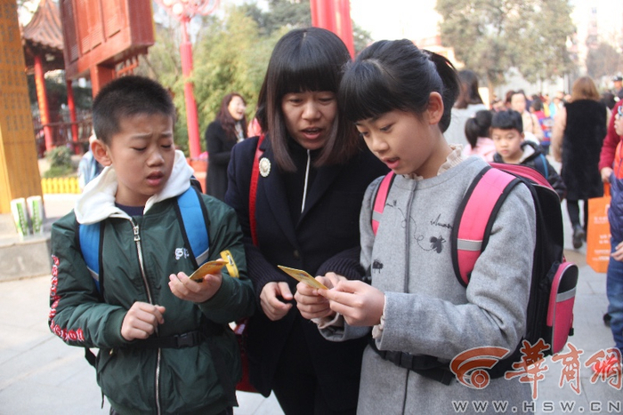 在二年级三班教室,华商报记者看到,不少学生报完名后,立即趴在课桌上填写通关文牒。看看彼此手中的经典密码,试着补充完整、大声吟诵,经典传诵的声音在校园中流淌。