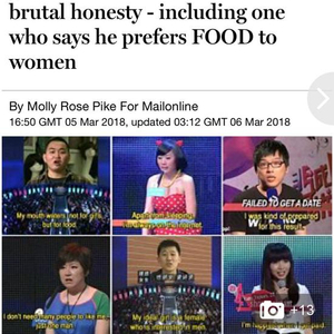 《每日邮报》似乎对节目里男女嘉宾的耿直特别感兴趣:一位女嘉宾在节目里坦言自己整天不是睡觉就是泡在网上,而一位男嘉宾则直言不讳地说:“我流口水不是因为看到了美女,而是看到了美食”。