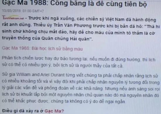 就在叨姐写这篇文章的时候,有学者传来越南方面的最新爆料:号称越南头号电子媒体、越南新闻与传媒部主管的Vietnamnet 在13日刊发文章“赤瓜礁1988:公平是为了共同进步”。文章说的还是那套“赤手空拳”“被迫还击”之类的子虚乌有。这样的论调每年这个时候都会冒出来。