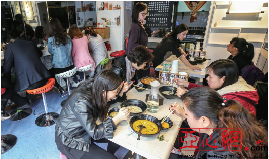 3月12日,乌鲁木齐市公园北街渔粉君,顾客正在吃鱼粉。记者喻义昌摄