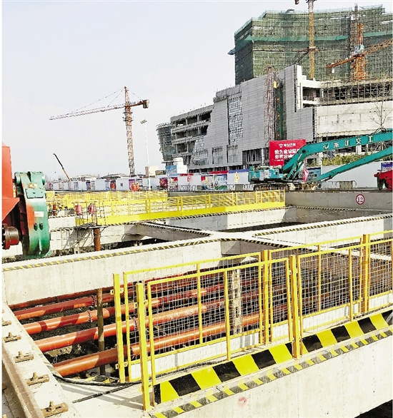 海宁皮革城站:位于一座天桥底下,天桥离地面仅8米多,而大型挖土设备都在15米以上,施工方采用低净空施工工艺——这样的设备国内仅有一两台。