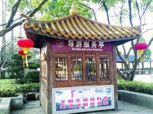 当天下午4点10分左右,记者到达太湖鼋头渚犊山门门口时,发现导游亭里几名工作人员正在收拾东西准备下班了。“你们现在准备下班了吗?如果有游客需要导游服务会有接替你们的加班人员吗?”